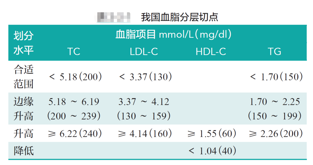 ☐ 建议20~40岁成年人至少每5年测量1次血脂(包括TC、LDL-C、HDL-C 和TG);
