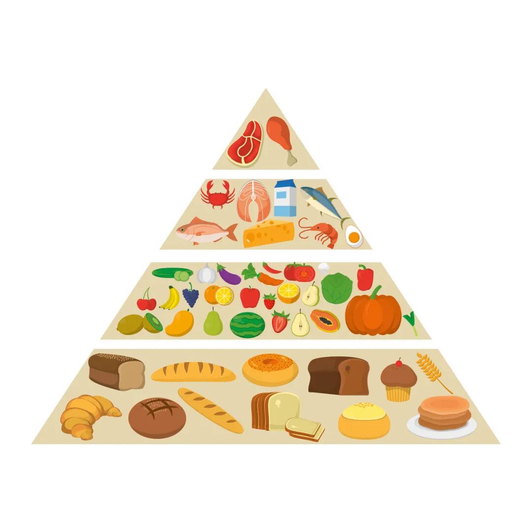 食物金字塔是一个均衡健康饮食的指引。 每天需进食金字塔内的五大类食物,包括:五谷类、奶类、肉类、菜类及水果,以利于吸收不同的营养素。注意塔尖的食物要少吃,例如脂肪、糖及油类。分布塔底的淀粉食物,是提供身体能量的主要来源。