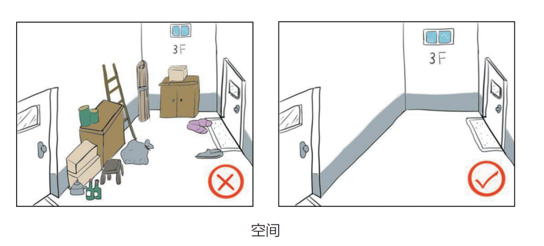 空间:楼梯过道不要堆放太多杂物,家具位置尽量不要随意挪动,以免老年人不熟悉环境,电线不要散落在地,避免绊倒。