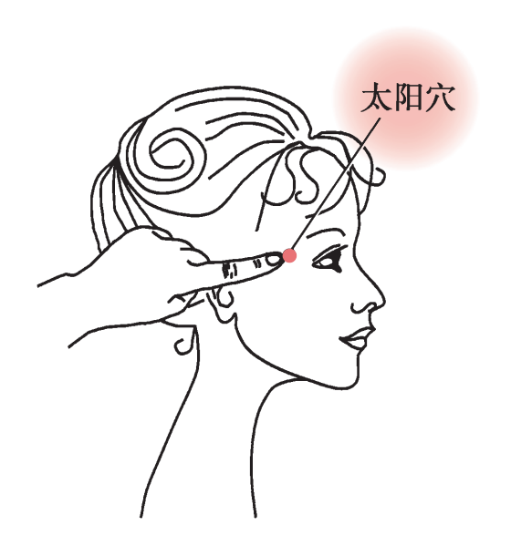 用双手拇指或示指分别置于两侧太阳穴,轻柔缓和地环形转动,持续 30 秒。可以提神解乏,舒缓紧张神经,缓解头痛。
