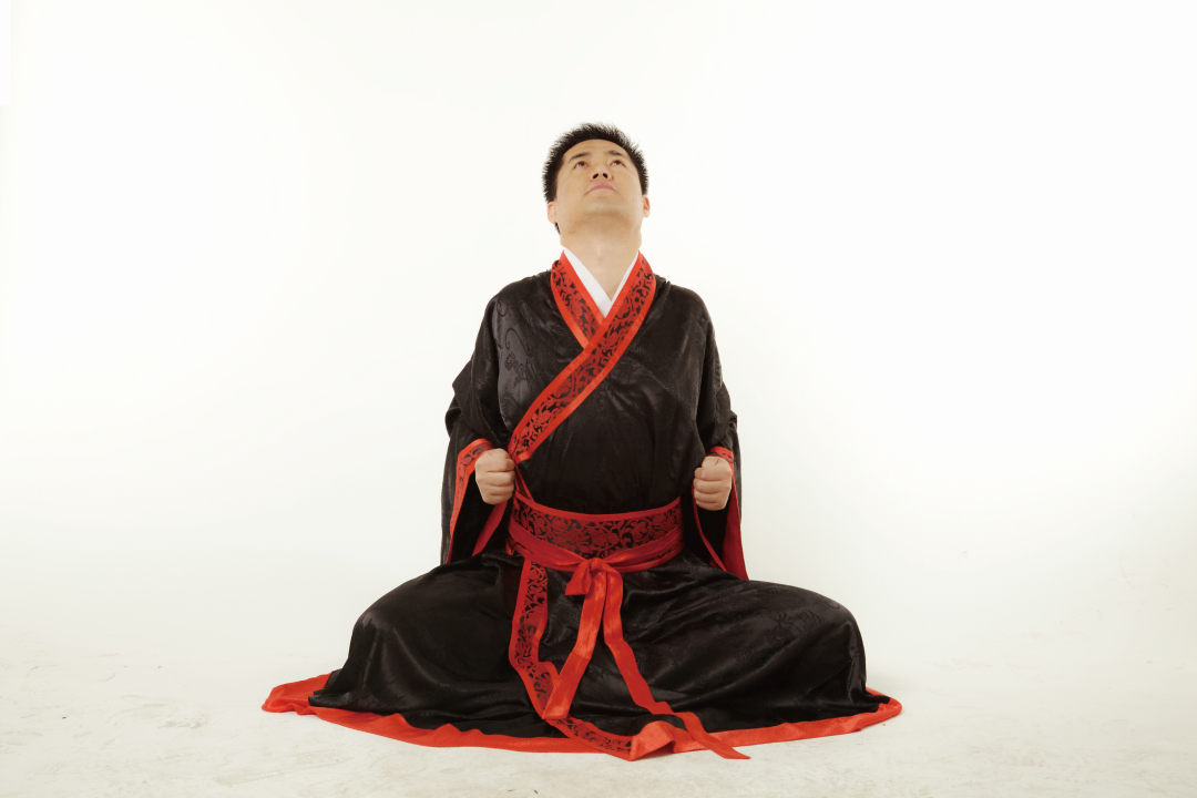 ●1.采用盘坐式(散盘、单盘、双盘均可),两手自然覆按于两膝,正身端坐,呼吸均匀,思想安静,全身放松。