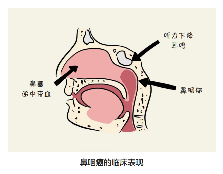 来到医院就诊,医生仔细询问病史发现他的三个典型症状:①两个月前出现耳闷塞感觉和耳鸣症状,自认为是上火了,没太在意。②出现头痛症状,从偶尔头痛慢慢变为持续性头痛。③在擤鼻涕时发现涕中带血。最后,医生为他做了左侧颈部淋巴结活检术,术后病理回报他患了鼻咽癌,并且已经出现了骨转移。