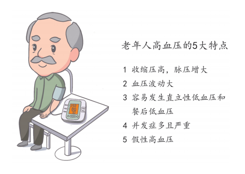 我国 60 岁及以上的人群中,每 10 个人当中就有 6 个患高血压。老年人常常患有动脉硬化,血管弹性差等问题,因此老年人高血压有 5 大特点: