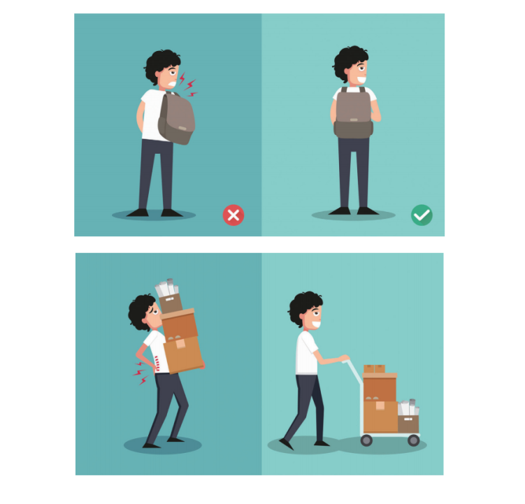 有长时间单侧手提或肩扛重物习惯的人,也要及时避免此动作,平时注意肩部扛重物后的不适感,采取按摩或拉伸等舒缓肌肉方式使不适感消退,并变换其他方式搬运重物,如使用便携式拉杆小货车等,避免直接肩扛或肩背重物等。