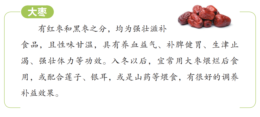 此外,冬三月还宜常吃芝麻、牛肚、羊肚、羊骨、鸡肉、鱼肉、栗子、花生、百合、木耳、燕窝、羊奶、豆浆、胡椒、砂仁、冬虫夏草、蛤蚧等。