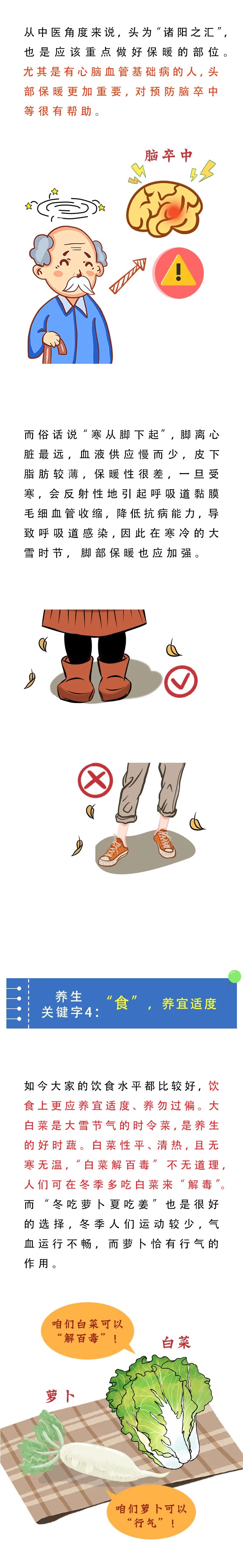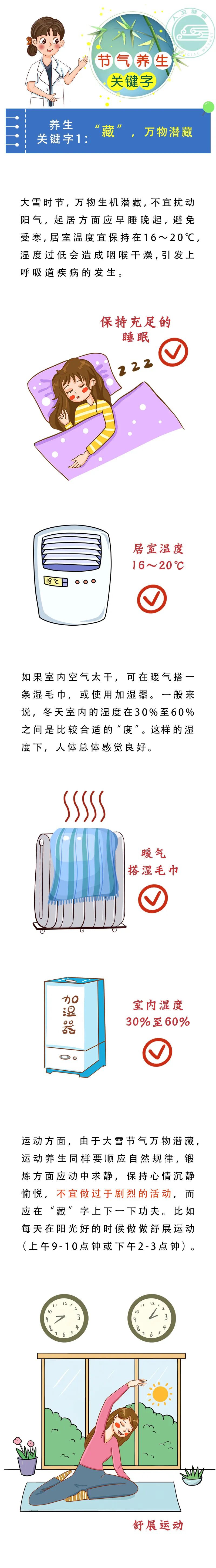 活步通臂式中“活”与“通”两字反映出大雪节气的导引原则。大雪节气是冬季降水的一个时令,这个时候人体需要“活”筋骨以“通”气血,从而抵御风寒,实现对人体进行二次浇灌。此导引术中的“活步”和“通臂”代表的是要全身上下协调的运动。