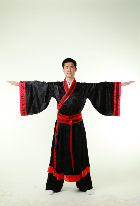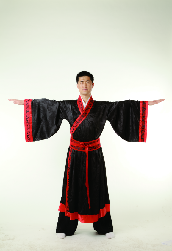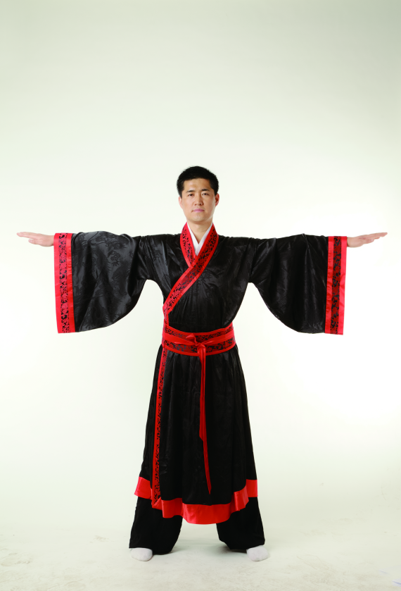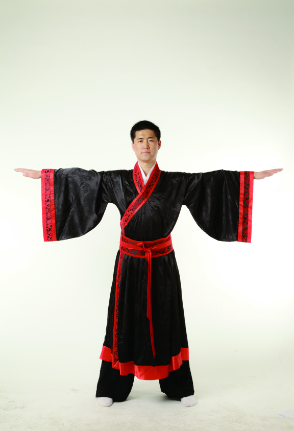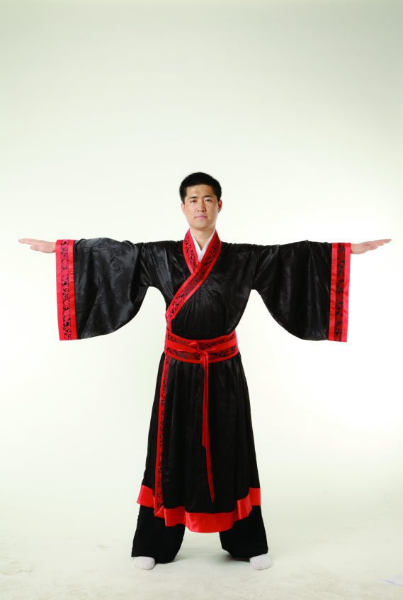 ●两脚并拢,自然站立,两臂自然下垂,头正颈直、竖脊含胸,呼吸均匀,思想安静,全身放松。
