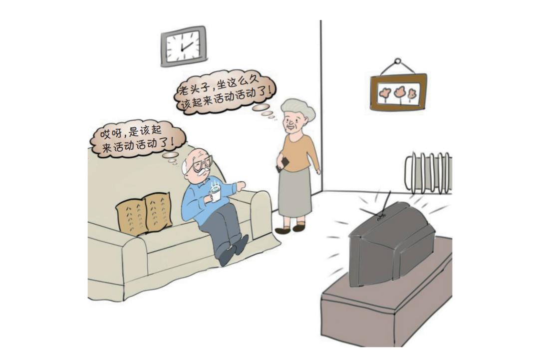 人到老年,身体功能下降,腰背部肌肉的强度和弹性下降,变得松弛,容易形成驼背。老年人不要久坐,而且要保持良好的坐姿,建议每坐 1 小时站立活动 5 分钟。