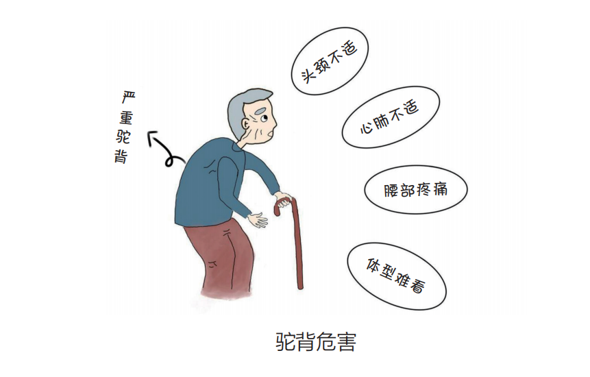 轻度驼背除形象不佳外,一般没有明显影响。当驼背严重时,不仅体型难看,行走不便,还会压迫内脏,影响心肺功能,引起腰背酸痛和头颈不适等症状。