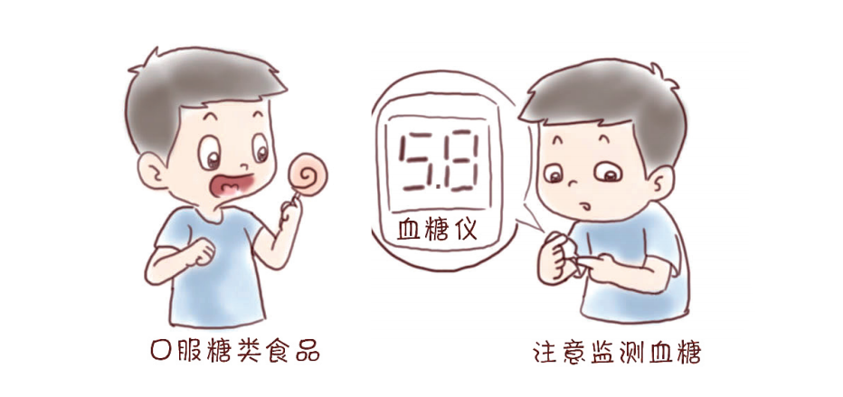 ▲ 每 15 分钟监测一次血糖,如果血糖还低于 3.9mmol/L,可以再服一次糖类食品;如果高于 3.9mmol/L 可以进食淀粉或蛋白质类食物如牛奶、香蕉或三明治等。