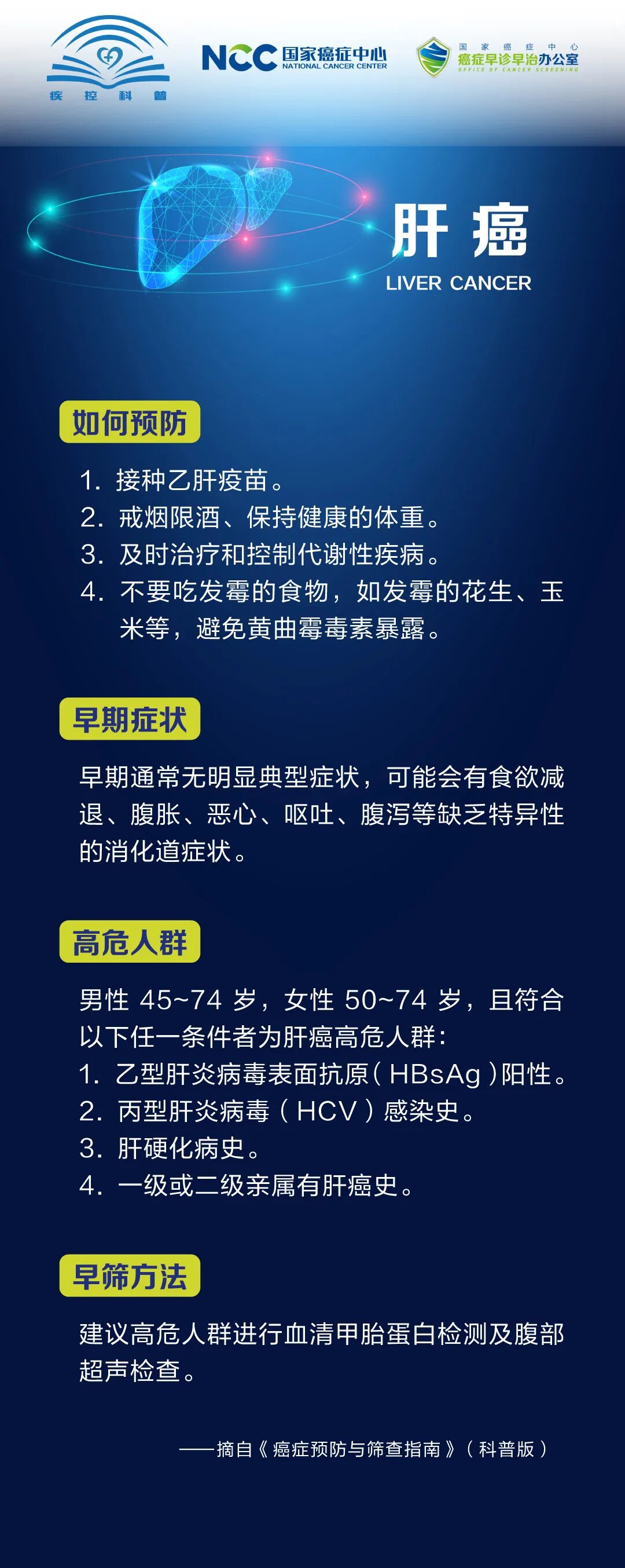内容摘自由国家卫生健康委员会疾病预防控制局指导编写,国家癌症中心组织编写,赫捷院士主编,人民卫生出版社出版《癌症预防与筛查指南(科普版)》。