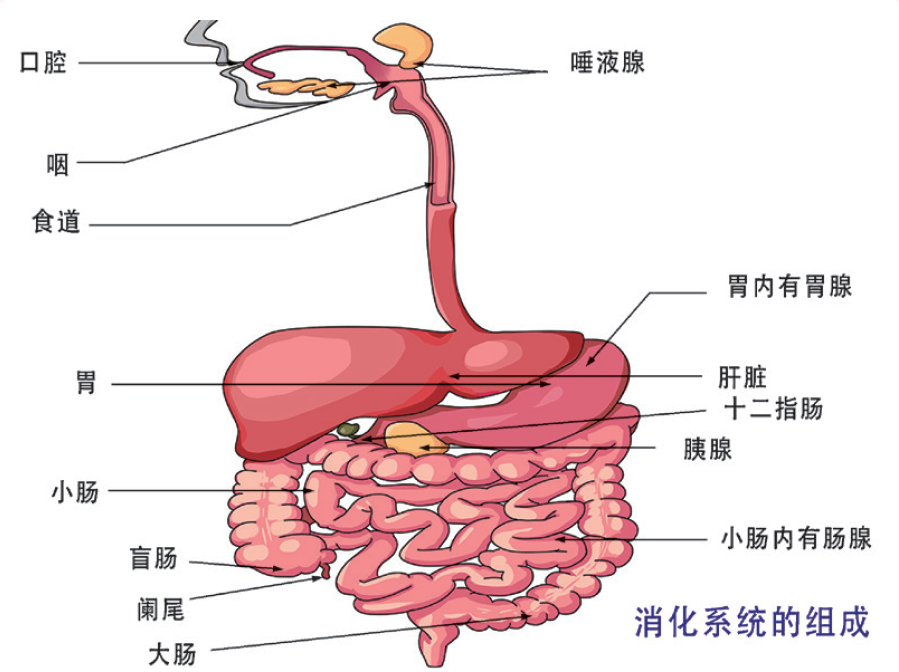 消化系统是指从口腔到肛门所有的与消化相关的组织和器官,形象的描述可以这样说:消化系统就是一个主管道+ 两个支管道(消化管道——口腔、食管、胃、小肠、结直肠+ 支管道——胆道肝胆、胰管胰腺)。