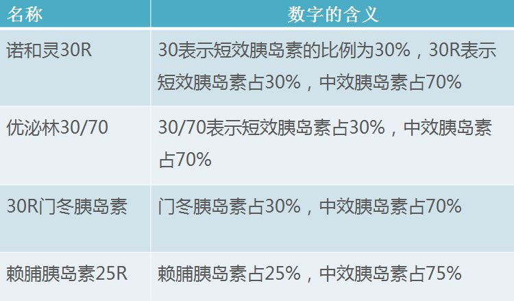 预混胰岛素有诺和灵30R,诺和灵50R,优泌林30/70,优泌林50/50;