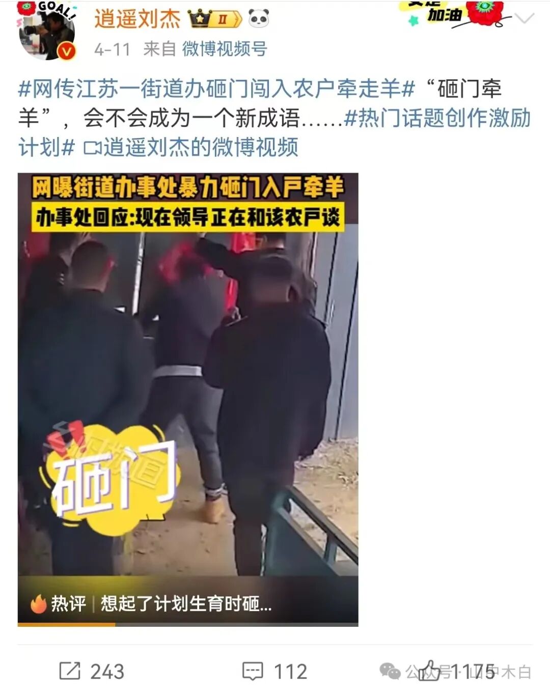 即便不是在台里,社里的那些被管着的自由写作者们,也不好过。就像我关注很多年的博主刘杰,才发完某地街道办砸门闯入农户家将人家的羊给牵走的事情,