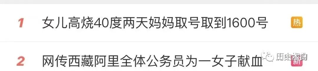 同样的,在阿里血槽姐事件并列着的也是一个发烧孩子的母亲 两天取号取到了1600号,