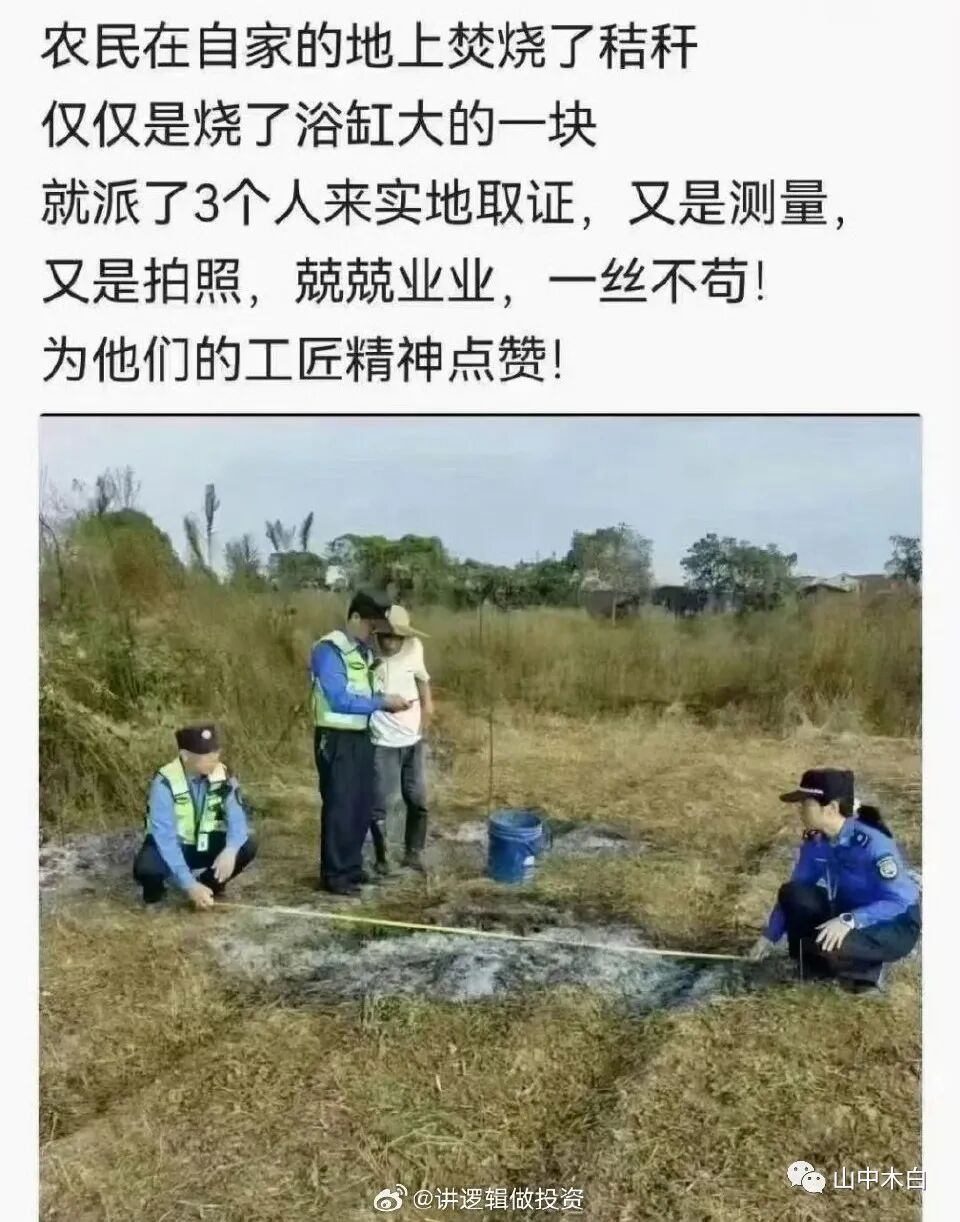 看完这两则报道一声叹息,因为就在昨天才看到一则新闻,才看到在自家地里焚烧秸秆,仅仅只有浴缸那么大的地方,便劳费人力物力的到现场实测丈量,又是取证,又是警告罚款的。