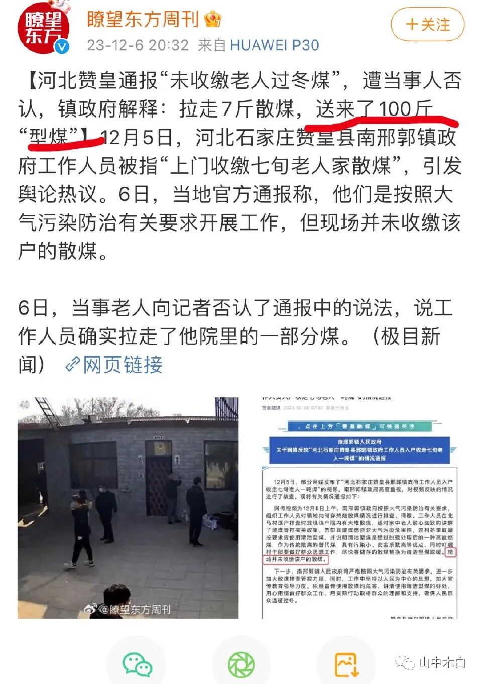 再返过来说河北老人煤被收走的事件,官方有没有造假,说假话,其实我们昨天即便放出来视频 也只能意味深长的说一句,他们大概是送温暖的,因为我,作为一个不入流的小写手,是承担不了造谣诽谤这个法律风险的。明知道,也没法说 是常态。但媒体是有监督权的,今天看到极目新闻的记者已经采访了,
