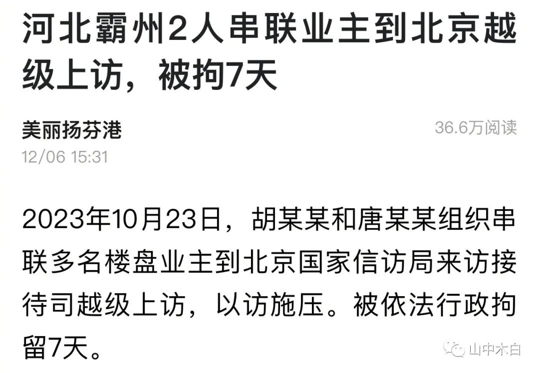 今天再写霸州,是文首的那张新闻截图,我收藏在图库保存了两天,每次看到,都不知道该怎么写。楼盘的问题,业主越级SF,然后就被拘留。