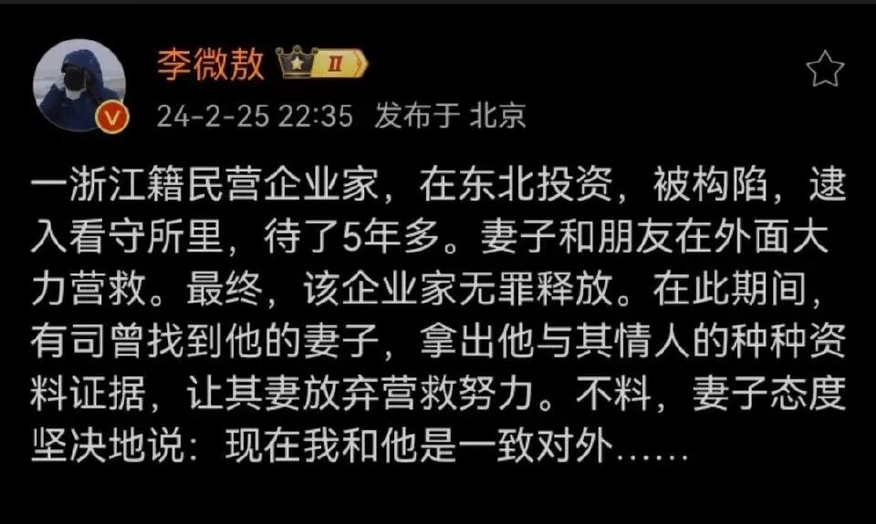 这样的事,在现实中并不少见,企业家动辄被抓的案例网上一搜一大把。这种现象,尤其是在那些经济相对落后的地区频频发生,譬如李微敖说的下面的这种。