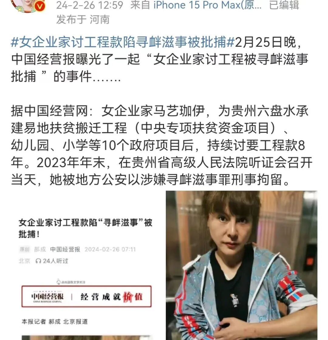 中国经营报的这篇文章刷屏了。通篇的文章没有那么复杂,就是女企业家在六盘水承包了很多的政府项目,结果到最后拿不到钱了,没得办法,只能起诉要钱,但悲哀的是,钱没要来,人被寻衅滋事了!