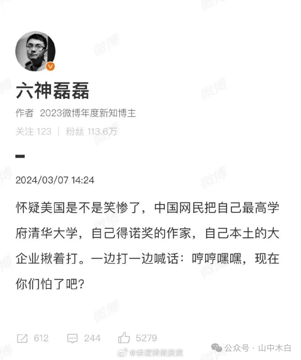 六神雷雷也说,自己本土的企业,自己的诺奖作家,自己的最高学府都喊打喊杀,现在你们怕了吧?
