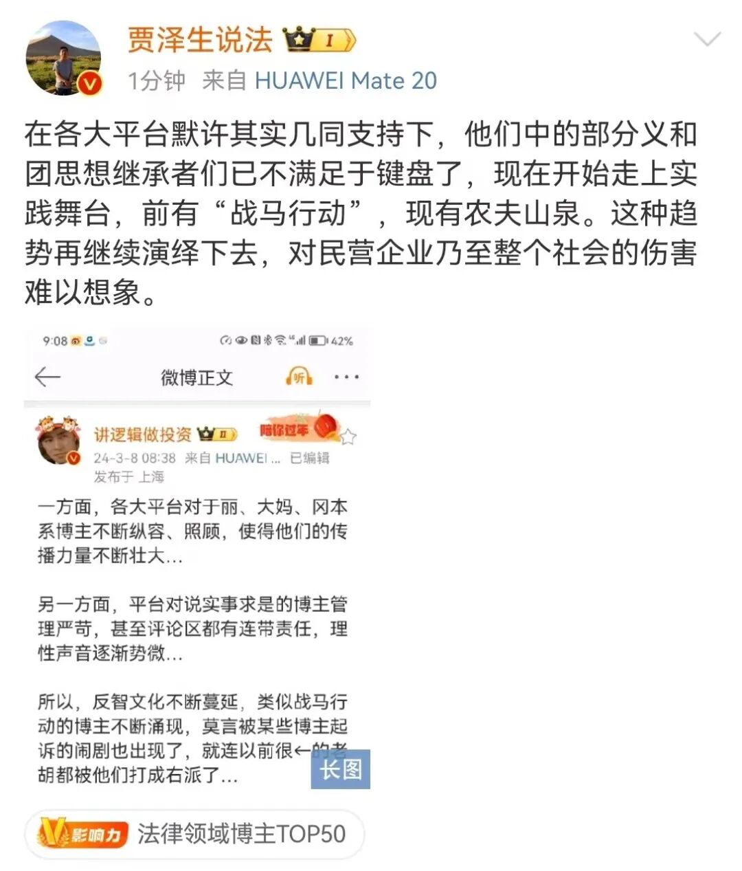 贾律师指出了一个现象,即,战马行动这样的人不会被管制,实事求是的多被严苛的管理,一个不注意就是禁言封号。