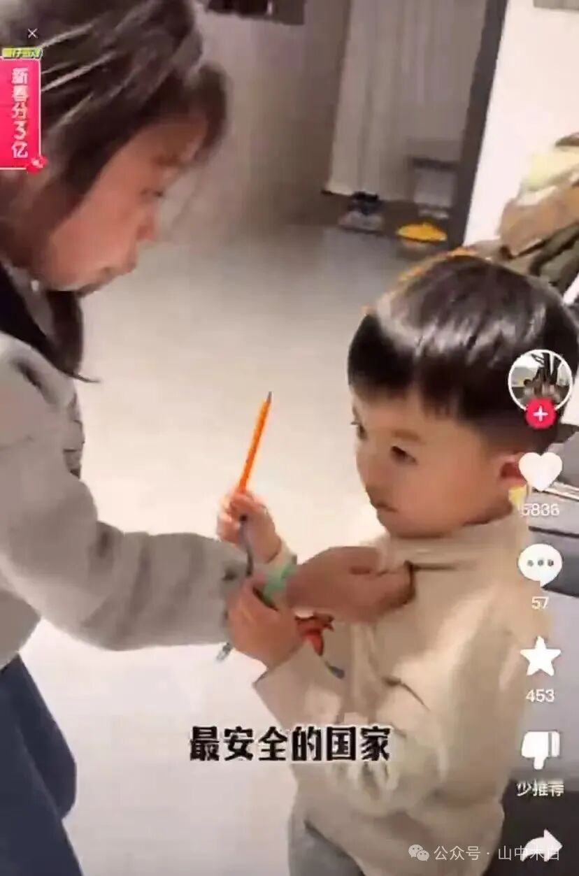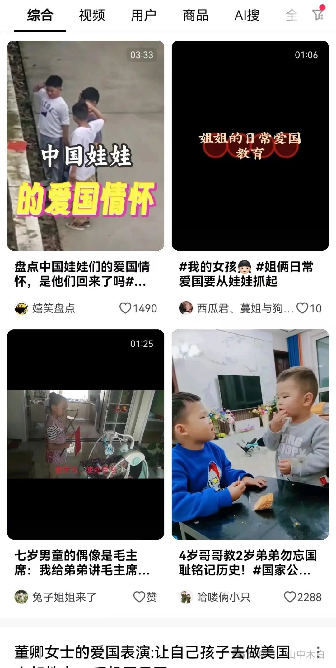 类似的视频在某音上已经泛滥成灾,除了仇恨之外,还有着诸多较为夸张的表演是式爱国。