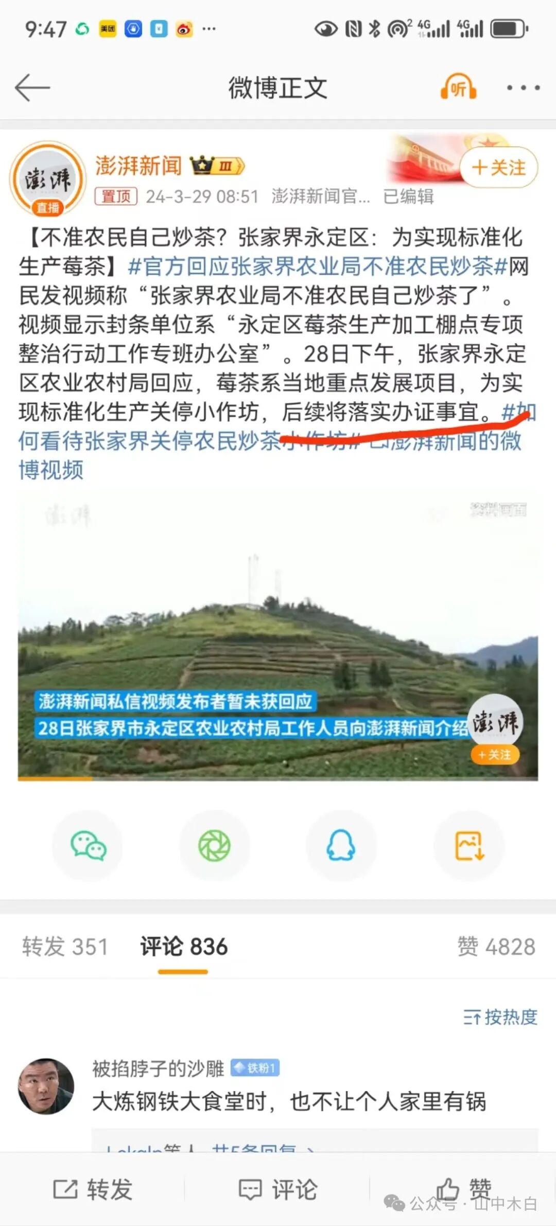 昨天写张家界禁止小作坊私自炒茶叶的文章后,后台普遍的几个代表性观点,