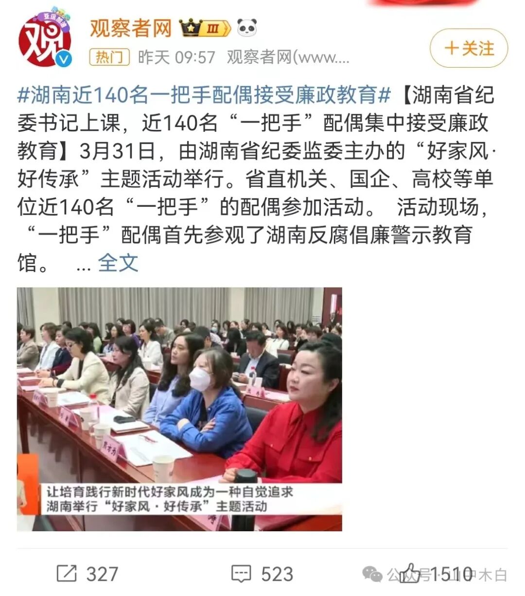 就譬如湖南,看看人家,140名一把手配偶也得接受廉政教育!