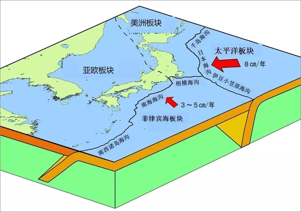 日本群岛附近板块运动示意图