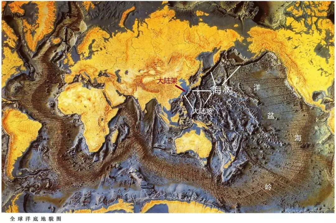 我们知道地球的陆地表面存在着高低不平的各种形态,我们称为“地形”,主要的地形类型包括高原、山地、丘陵、平原和盆地等五种。实际上覆盖地球表面超过70%以上的海洋,其海底也不是平坦的,而是有很多高低起伏,也就是可以分为不同的地形类型,海底地形类型主要包括大陆架、大陆坡、洋盆、海岭和海沟等五部分。