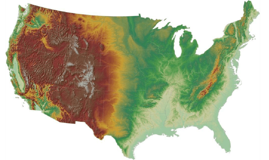 美国是一个地跨北美洲和大洋洲的国家,国土由美国本土、阿拉斯加地区和夏威夷群岛三部分组成,国土面积约为937万平方千米(外交部数据),是世界第四大国。要知道美国陆地海拔最高和最低的地方在哪里,我们应该首先来了解一下美国的地形状况。