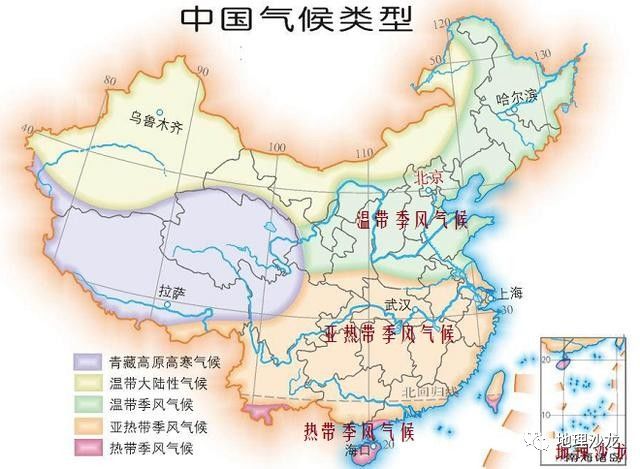 由于我国地处世界上最大的大陆亚欧大陆和最大的海洋太平洋之间,海陆热力性质差异显著,从而形成了非常典型的季风现象,即冬夏季节盛行风风向完全相反,夏季主要盛行东南季风,冬季主要盛行西北季风,我国以东亚季风影响为主,少部分地区也能受到南亚季风的影响。我国拥有世界上全部的季风气候,包括热带、亚热带和温带季风气候。