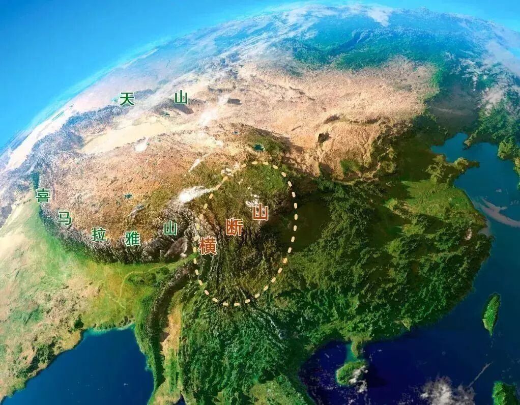 山脉通常都会沿一定的方向延伸,我们称为山脉的走向,在我国众多山脉中有两类走向的山脉数量最多,分别是东西走向和东北-西南走向的山脉,分别各有三组山脉。南北走向的山脉,在我国的分布数量并不是很多,其中最为著名的应该就是“横断山脉”。横断山脉位于我国西南部地区,位于青藏高原的东部边缘,是我国第一二级阶梯的分界线,是由多列南北走向的平行状山脉组成,是我国最长、最宽和最典型的南北走向山系。