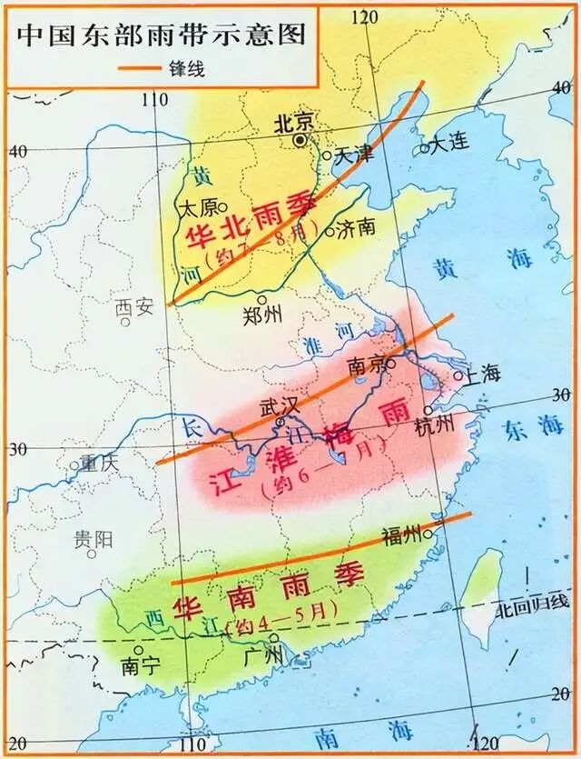 由此,我们发现我国季风气候区的降水特征表现为“夏季降水多,冬季降水少,降水季节变化大”,因而也就导致我国雨季时洪涝多发,夏汛在我国最常见,干季时干旱多发,冬旱和春旱在我国都有发生。此外,季风的不确定性导致了我国降水的复杂性,首先,在年内变化中,由于夏季风强弱的差异,导致雨带进退时间和停留区域位置差异巨大。