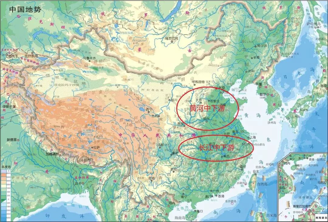 我们发现长江中下游地区的自然条件,特别是气候条件是要优于黄河中下游地区的,长江中下游地区属于“亚热带季风气候”,热量和水分条件都优于黄河中下游地区的“温带季风气候”,但是,在历史上的很长时期内,也就是在唐宋之前,我国的人口和经济中心都在北方黄河中下游地区,而到了唐宋以后人口才逐步往长江中下游地区聚集,这是为什么呢?要回答这个问题我们要从两个角度来看,首先是自然条件,我们知道气候本身具有周期性的变化,据研究,在我国唐代之前,当时我国的黄河流域比现在要温暖湿润的多,也是十分适宜人类大规模生产生活的。