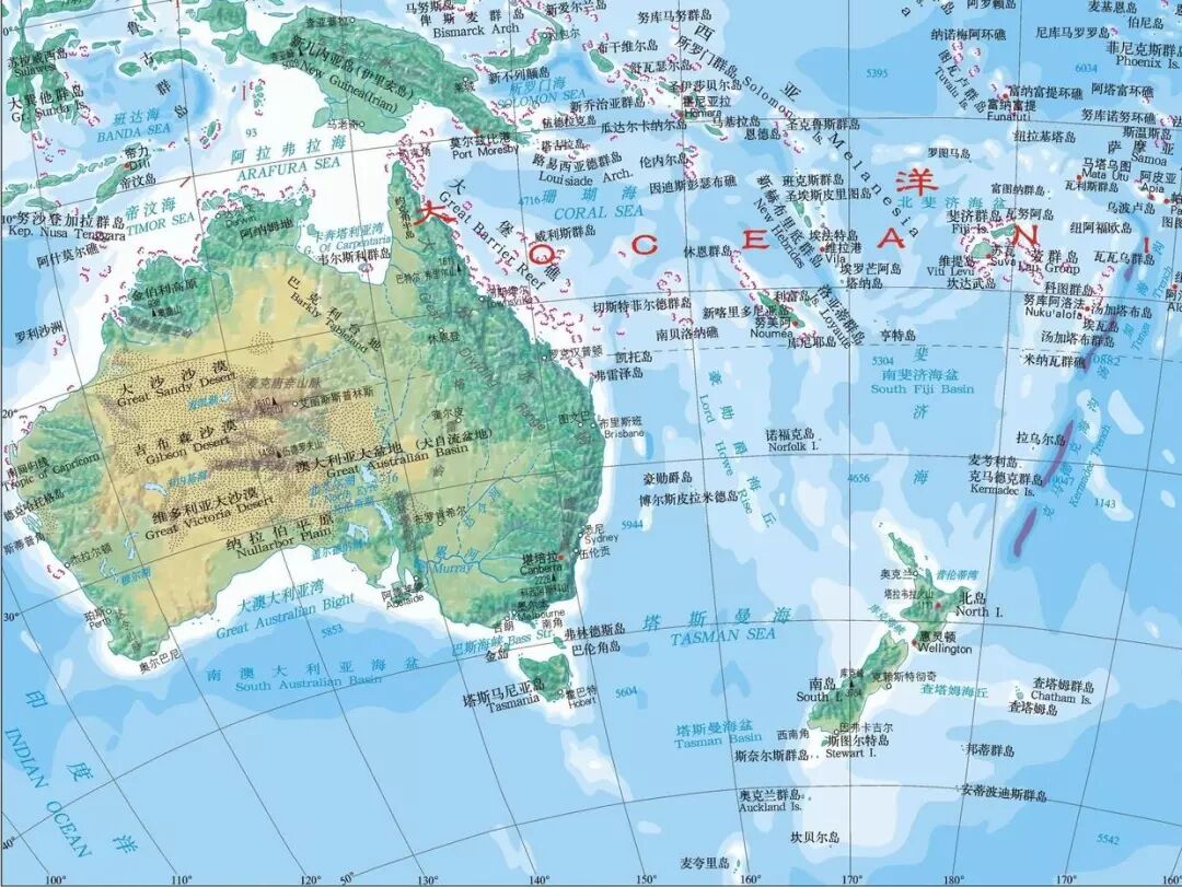 比澳大利亚大陆面积小的陆地,就都称为“岛屿”,世界上面积最大的岛屿是是格陵兰岛,总面积约为216万平方千米。有人说,各个大陆的东南方位都有比较大的岛屿,这是否仅仅是巧合?我们发现非洲大陆的东南部有一个很大的岛屿,那就是非洲第一大岛马达加斯加岛,总面积约为58.7万平方千米,是世界第四大岛。澳大利亚大陆的东南部海洋中也有一个岛屿,那就是塔斯马尼亚岛,面积约为6.45万平方千米,在澳大利亚大陆东南方向更远一点的海洋中还有两个更大的岛屿,那就是新西兰的北岛和南岛。