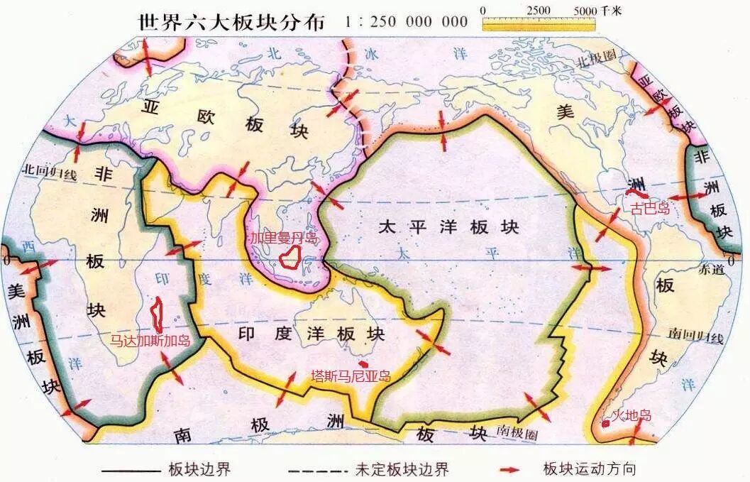 最后,我们来看北美大陆,北美大陆的周围岛屿分布众多,其中东北部和东南部分布的岛屿数量最多,北美大陆的东北部海洋中分布着世界上最大的岛屿格陵兰岛,是世界上岛屿分布最集中的区域。北美大陆的东南部地区也分布有数量众多的岛屿,主要是西印度群岛,其中古巴岛是最大的岛屿,总面积约为10.5万平方千米。所以,我们发现大陆东南方位都分布有较大的岛屿,这句话是基本正确的。那么,这是为什么呢?面积较大的岛屿,主要是大陆岛,一般来说板块的交界处附近,由于地壳运动活跃,更容易形成岛屿。