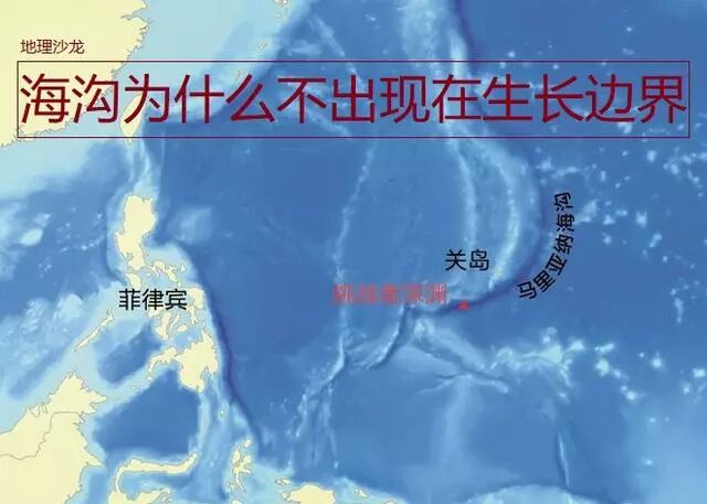 有很多人都会认为海沟是位于板块的生长边界附近的,因为由于板块之间相互张裂分离,所以就会形成一条深深的海沟。其实不然,海沟是分布于板块消亡边界中的地理事物,海沟多是出现在海洋板块(比如太平洋板块)和陆地板块(如亚欧板块、美洲板块、非洲板块等)之间相互碰撞挤压,由于海洋板块位置比较低,就会在碰撞的过程中俯冲到陆地板块的下方,并且在俯冲的过程中形成一个向下的俯冲带,通常这个深深的俯冲带位置就是海沟所在的区域。