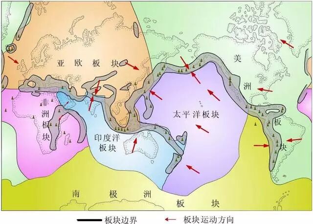 当然,陆地板块和海洋板块相互碰撞不仅仅会形成海沟,同时也会形成岛弧和海岸山脉,比如亚洲东部的岛弧以及南北美洲西侧的科迪勒拉山系都是板块碰撞挤压的结果。此外,如果是陆地板块和陆地板块相互碰撞,那么就不会出现海沟了,比如南亚次大陆往北一头撞向了亚欧大陆,两个陆地板块相互碰撞挤压,形成了巨大的褶皱山系(喜马拉山脉)的巨大的高原地形(青藏高原)。位于欧洲南部的阿尔卑斯山系,其形成就是由于非洲板块和亚欧板块碰撞挤压而形成的。