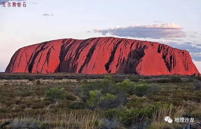 对于以上两种说法,应该是第一种说法的可能性较大,由于不同岩性的岩石在外力作用下风化侵蚀的速度不同,从而保留下了岩性比较坚硬的艾尔斯岩石,当然要实现这一过程需要经历千万年的过程,这也得益于在很长时间内,澳大利亚中部地区地质稳定,没有发生大规模的地壳运动。
