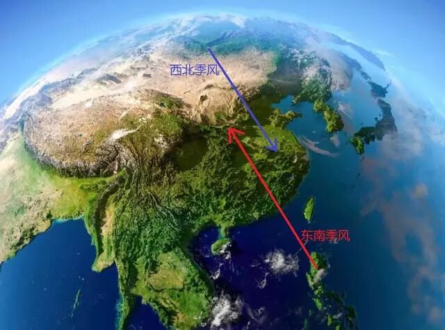 此外,当山脉的走向与当地的盛行风向垂直时,通常会形成“迎风坡”和“背风坡”,当然如果盛行风来自于海洋则更加明显。比如,我国东部地区主要受东亚季风的影响,夏季盛行来自海洋的东南季风,而冬季盛行来自内陆的西北季风,所以我国的山地中朝向东南(朝南)的山坡为“迎风坡”,朝西北(朝北)的山坡为“背风坡”。来自太平洋的湿润空气,受到山地的阻挡抬升,随着海拔的升高空气不断降温,空气中的水汽冷却凝结从而产生降水,所以山地的迎风坡降水丰富,而等气流翻过山脉,到达背风坡一侧,空气中水汽含量较少,而且空气由山顶往山麓运动,海拔不断降低,空气升温更不容易产生降水,所以山地的背风坡降水稀少。