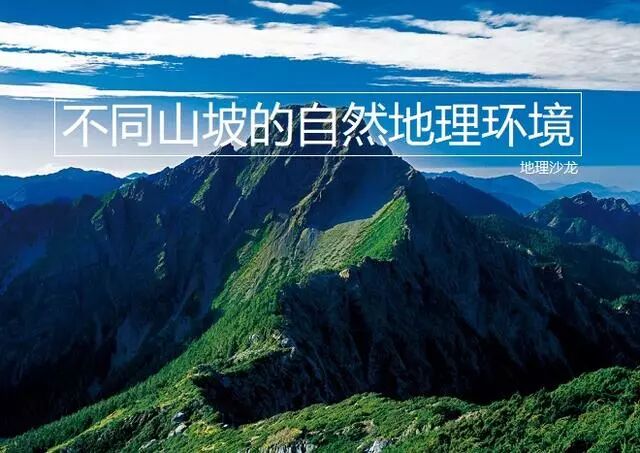 自然地理环境是岩石圈、大气圈、水圈、土壤圈、生物圈、人类圈等自然地理圈层组成的有机整体,其中每一个要素都作为整体的一部分,与其他要素相互联系和相互作用,并保持协调统一。而地球表面的不同区域之间,由于自然地理要素的不同,也会产生十分明显的自然地理环境差异性,在大中小各种尺度中都存在这种差异性。比如,不同的地形条件下,就可能对自然地理环境产生不同的影响,今天我们就从山地的不同山坡角度,来看看不同类型山坡对于自然地理环境的影响。