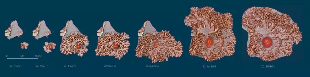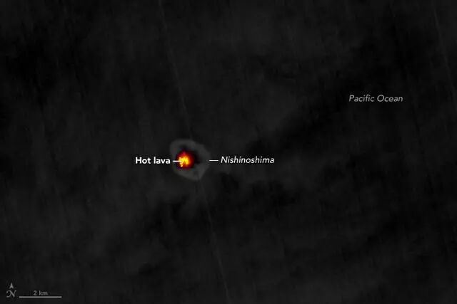 在今年1月26日,卫星拍摄到西之岛上的火山发生喷发活动,卫星照片显示拍摄到了火山灰和蒸汽羽流,岛上的火山喷发形成的熔岩流往岛屿的东北方向流动,最终流入海洋中冷却,西之岛的火山喷发增加了岛屿上的火山岩,扩大了岛屿的规模,或者说近几十年来西之岛的面积在不断的变化之中。大约在1973年4月的某一天,这里的海底发生大规模火山喷发,最终火山熔岩堆出海面大约1米,此后在当年9月火山再次喷发,形成了长约100多米的岛屿,这座岛屿位于西之岛附近,所以就命名为“西之新岛”。