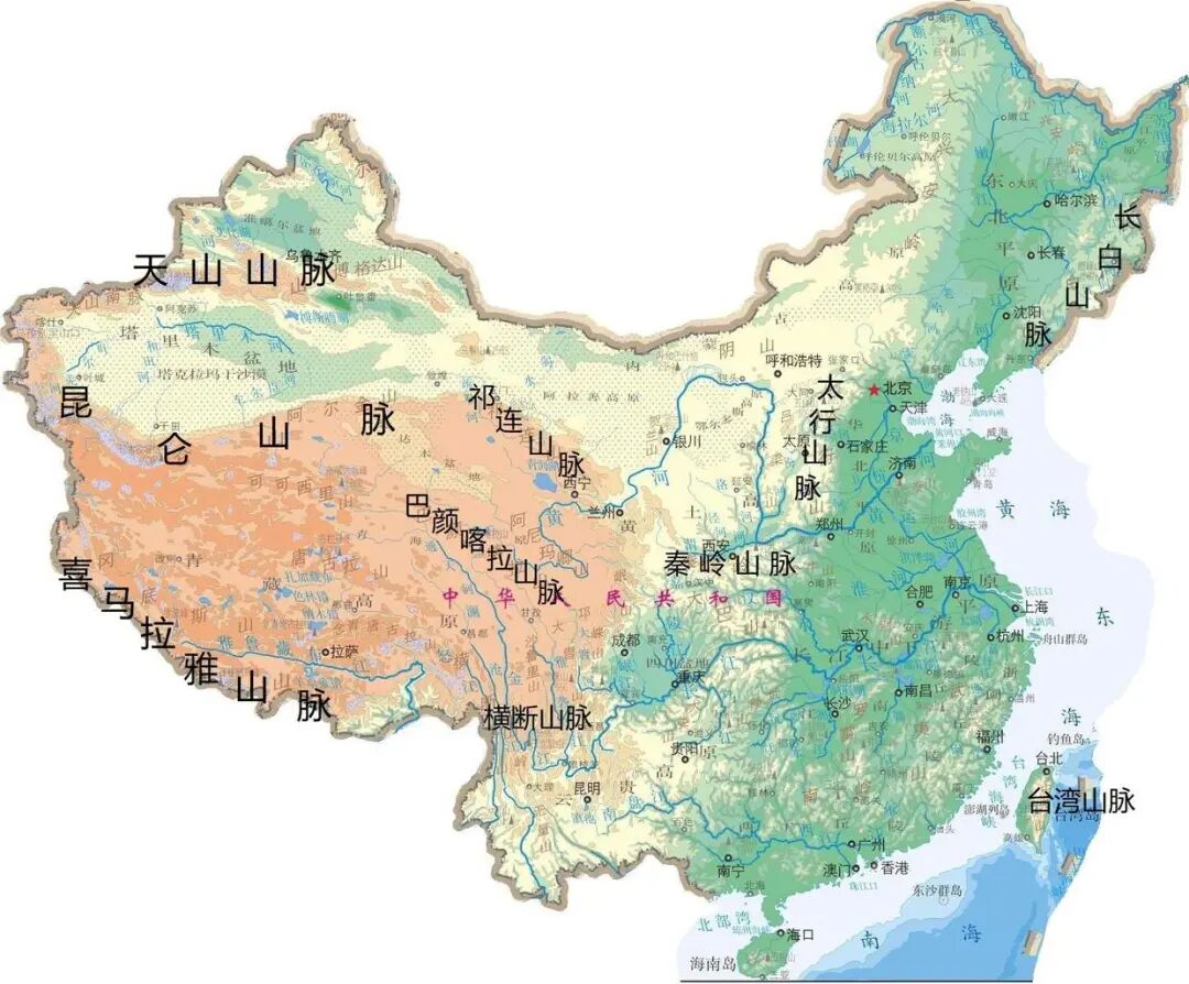 地球表面陆地地形可以分为平原、高原、丘陵、山地和盆地等五种基本类型,山地地形是指海拔在500米以上,起伏很大坡度陡峻的地表形态,山地一般都会呈现“脉状”分布,常被称为山脉。山脉是我国地形的框架,我国许多的地形区都是以山脉为边界而围成的,我国的山脉大大小小数量极其众多,我国主要的山脉有两种走向,分别是东西走向和东北西南走向。
