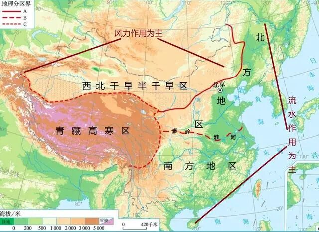 我国三大自然区分布图