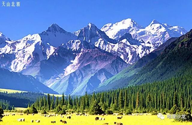 如果受到水分因素的影响,会使得自然带也会产生更替,我们称为干湿度(经度)地带性分异,比如从沿海到内陆地区,随着水分的减少,陆地自然带往往会出现从森林到草原,再到荒漠的更替。通过以上分析,很显然,天山的北坡有森林而南坡却没有,造成这种现象的影响因素主要是水分。