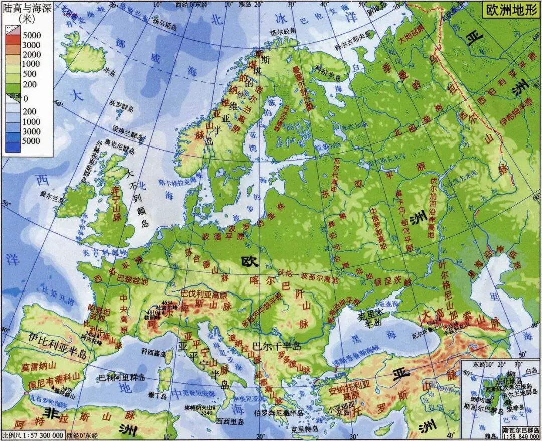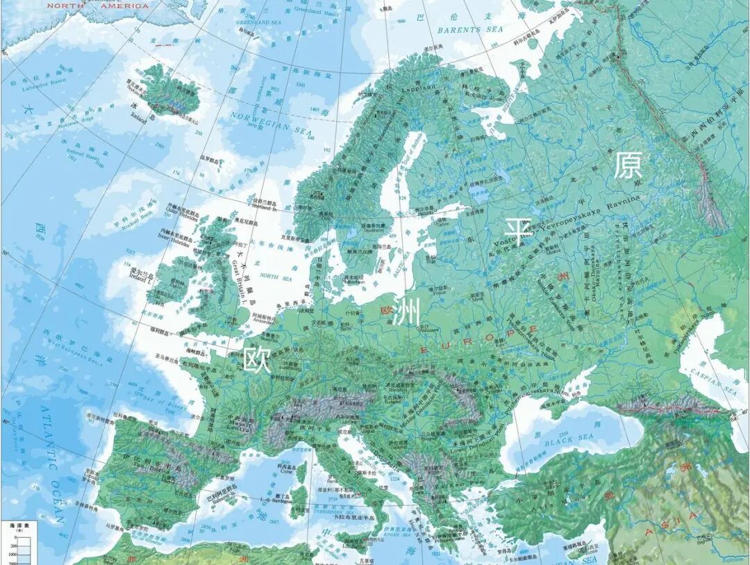 如果世界七大洲,从平原面积占比来看,比例最高的大洲是位于亚欧大陆西部的欧洲,欧洲是世界上地势最为低平的大洲,总面积约为1000万平方千米,全洲平均海拔仅为340米,海拔在200米以下的平原地形约占欧洲总面积的60%。从欧洲的地形分布来看,北部主要为斯堪的纳维亚山脉,而南部地中海沿岸地区主要为阿尔卑斯山系及其余脉,平原地形主要分布在欧洲的中部和东部地区。