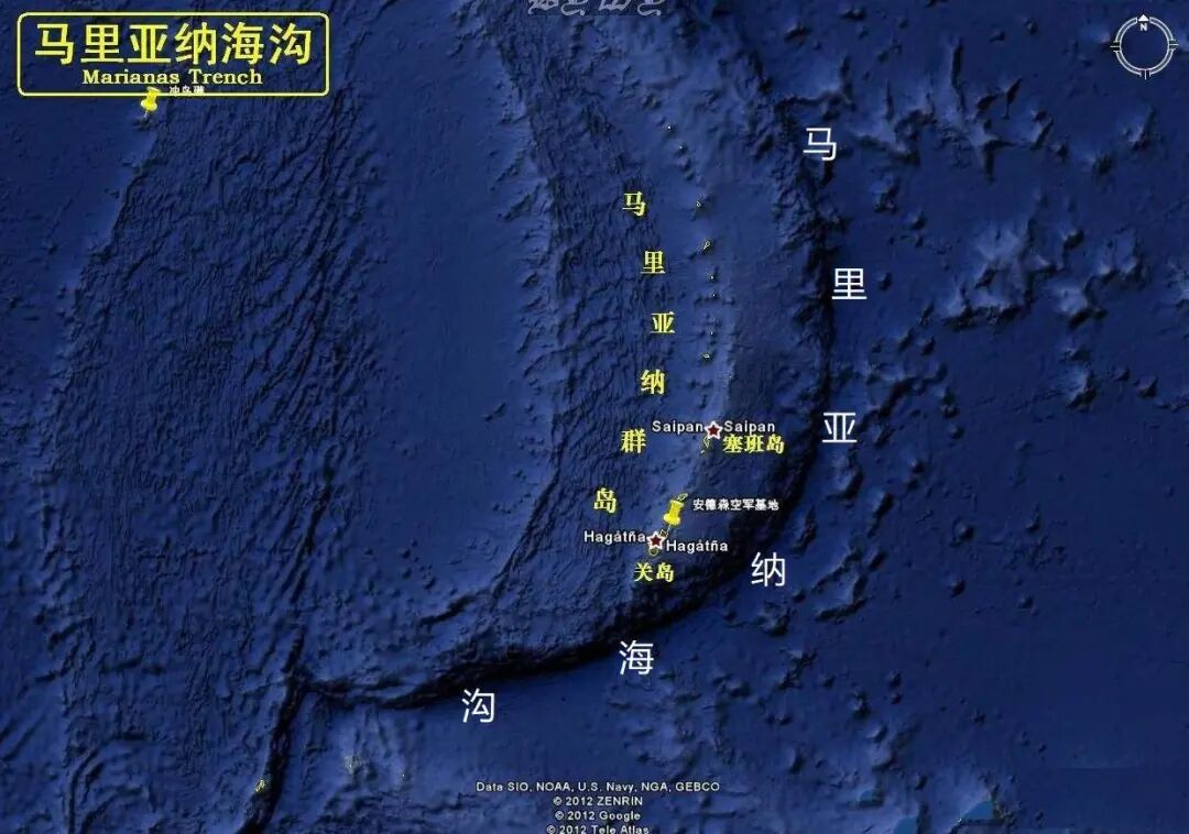 马里亚纳海沟位于菲律宾群岛的东部太平洋海域,北起硫黄列岛、西南至雅浦岛附近,全长超过2550千米,呈圆弧形态,其深度大部分在8000米以上,其中最深处约为11034米,是地球表面的最深点。海沟也是板块运动的结果,海沟形成于海洋板块与陆地板块相互碰撞挤压的消亡边界上,位置相对较低的海洋板块俯冲到大陆板块的下方,在板块向下的俯冲地带,形成了深邃的海沟,在太平洋的四周分布有大量的海沟。