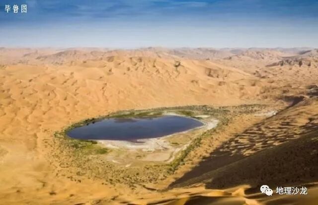 有了沙子来源和强大的风力作用,在绝大多数地方只能形成移动沙丘,而很难形成规模如此巨大的沙山,所以形成毕鲁图峰的原因中还有两大重要因素。第三是沙山内部多泉水,登上沙山顶峰,俯瞰四周,相隔几公里就有6个湖泊分布,泉水使得沙山的沙子湿度很大,就比较不容易被风吹走。